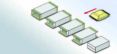 Met deze kartonneermachine kunnen individuele producten verpakt worden in primaire dozen. De producten worden aangevoerd, verzameld, geformeerd en zijdelings in de gereedstaande doos geschoven.