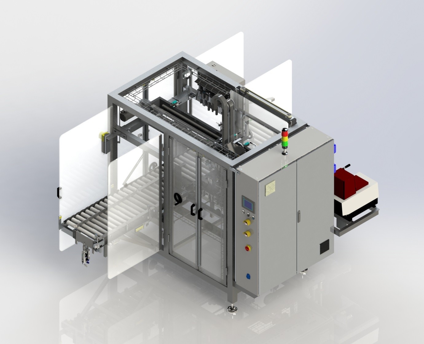 De volautomatische D-100 is een machine voor het opzetten van deksel op dozen en trays, de sluiting wordt gedaan met Hotmelt. De capaciteit van deze machine is tot maximaal 15 dozen / minuut.